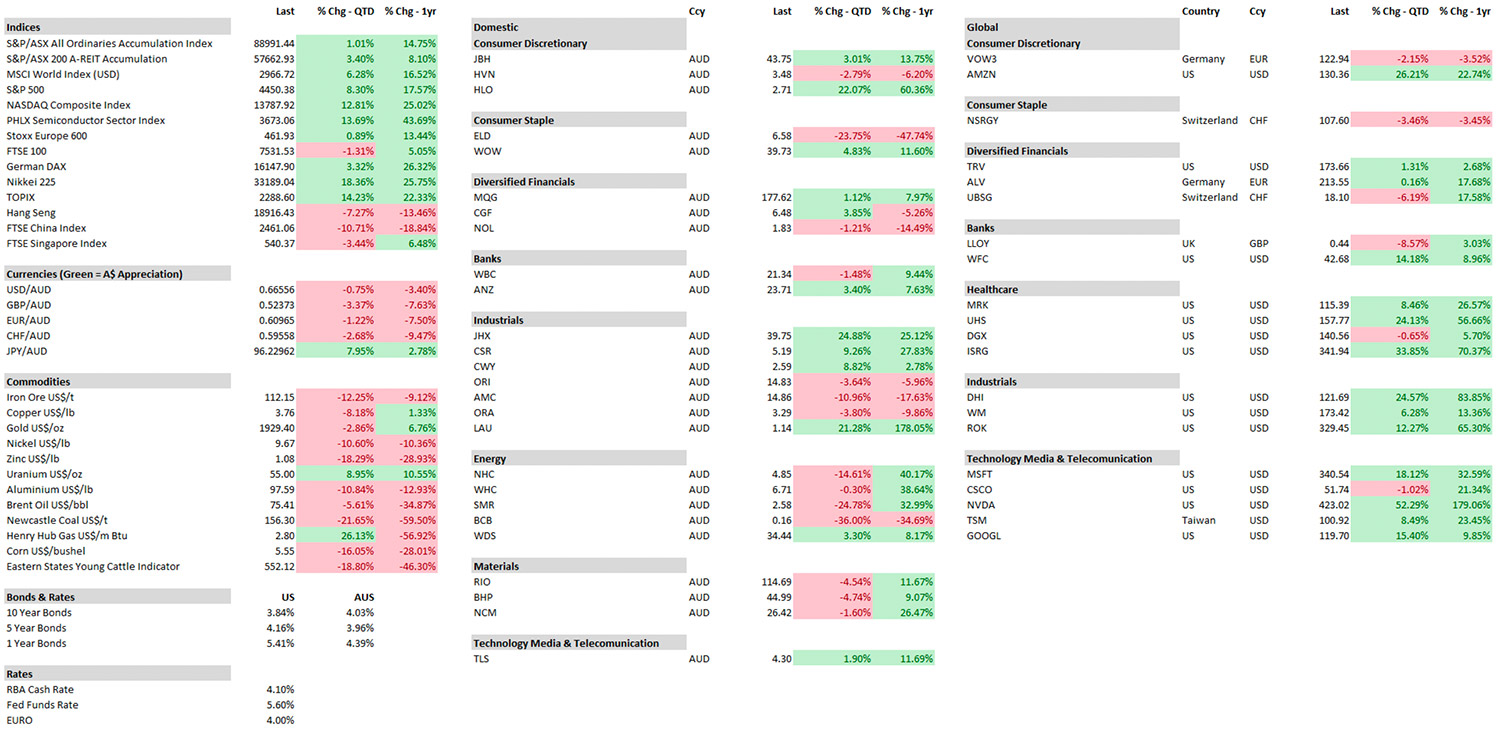 After 500 bps of rate hikes the US Federal Open Market Committee (FOMC) paused interest rates at its June meeting and has maintained the Federal Funds rate in a range of 5 to 51/4 percent and continues to reduce its securities holdings. In essence the FOMC wants to see the full effects of its tightening to date given “the uncertain lags with which monetary policy affects the economy”.