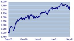 Equities markets rose strongly during the last twelve months, although the last three months saw the rate level off as fresh concerns arose over the spread of the Covid Delta strain. Additionally, there was pronounced weakness in China stocks over concerns of increasingly overt political involvement in capital markets. The long running sore of the financial troubled property developer Evergrande also came to a head, focussing attention on excesses in property and on banking troubles, periodic themes in China.