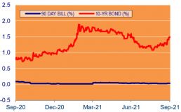 Over the quarter, interest rates remained at historically low levels, however the narrative from central banks has begun to change. At its most recent meeting the US Federal Reserve (the Fed) left the federal fund rate (FFR) unchanged but noted that it could need to lift rates as early as 2022 and implied that the FFR could be 1.8% in 2024. On tapering asset purchases, the Fed noted that “a moderation of asset purchases may soon be warranted.” Chairman Powell was quoted as saying the tapering process could start as soon as the next meeting and conclude in 2022.